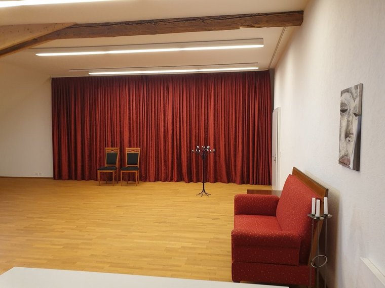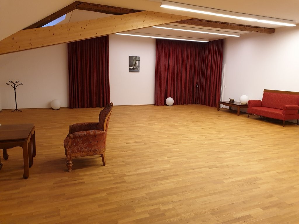 Grosszügige Dimension, eine Atmosphäre, die Kreativität förmlich beflügelt. Der grosszügige und lichtdurchflutete Raum bietet flexible Gestaltungsmöglichkeiten für Körperarbeit und Beratung.